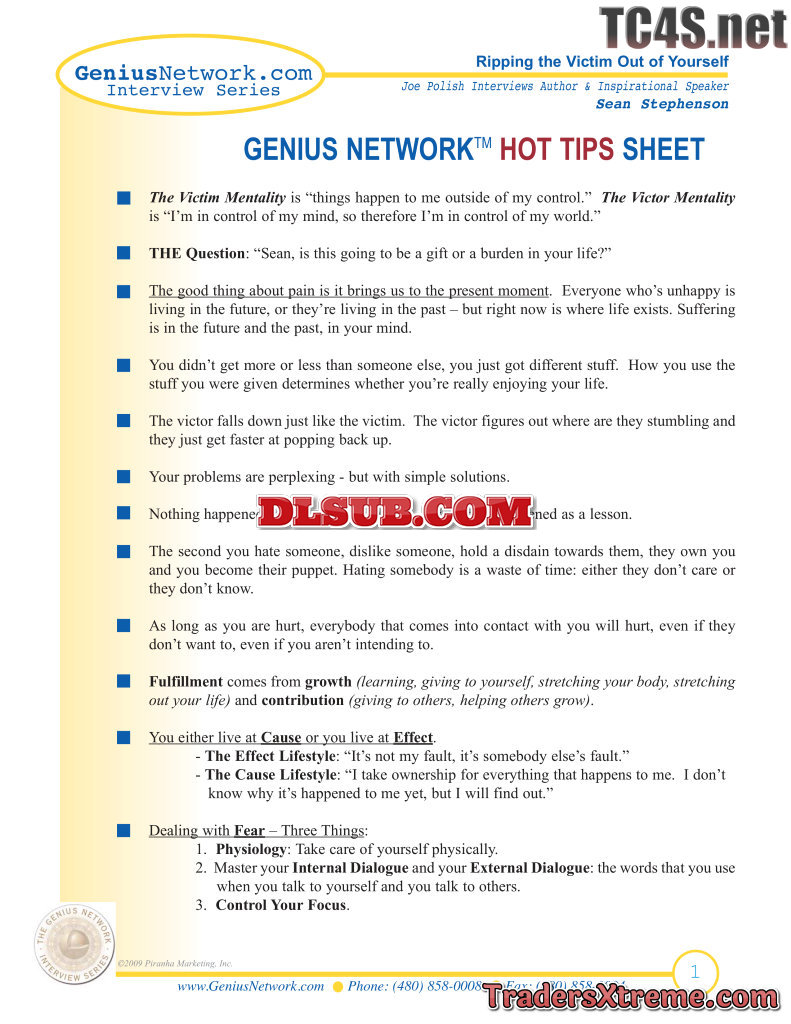 Genius Network Hot Tip Sheet Sean Stephenson - JPG Image File