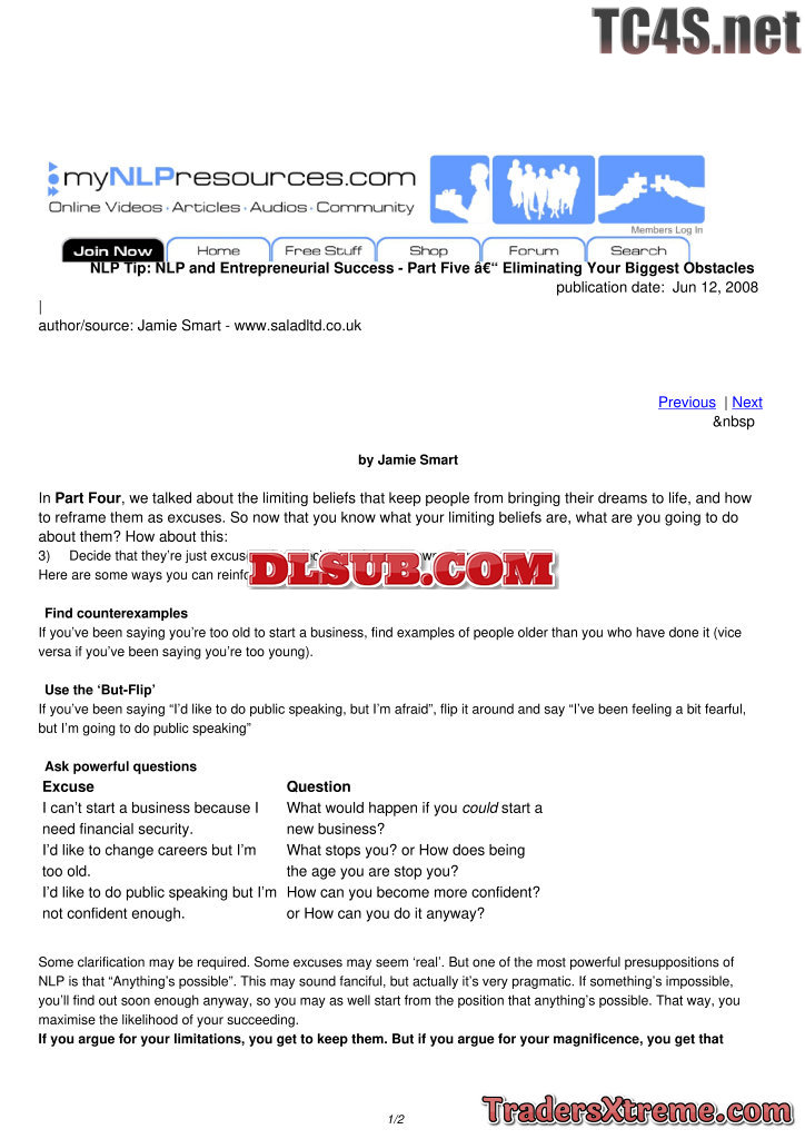 Nlp And Entrepreneurial Success Part Five Eliminating Your Biggest Obstacles - JPG Image File