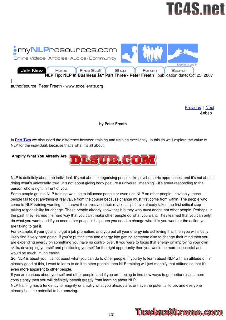 Nlp In Business Part Two Peter Freeth - JPG Image File