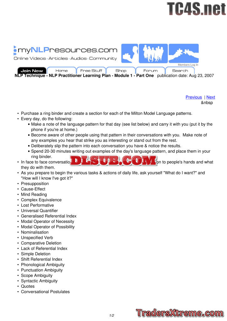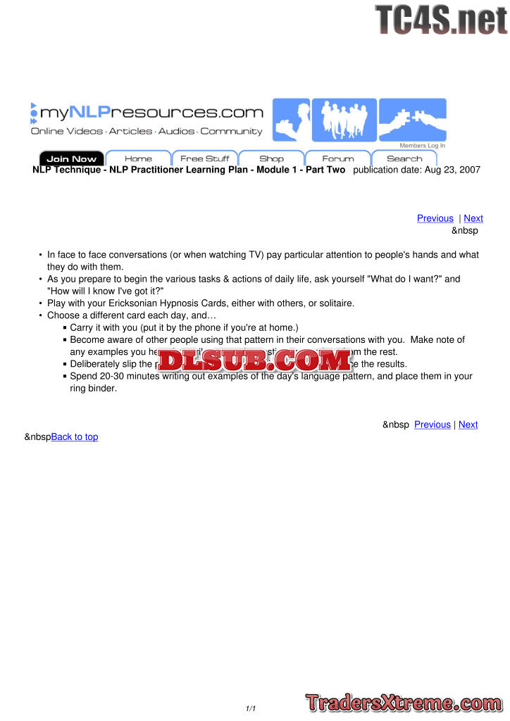Nlp Practitioner Learning Plan Module 1 Part One - JPG Image File