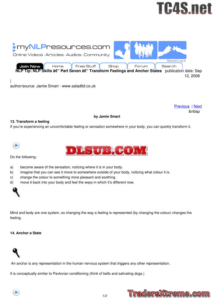 Nlp Skills Part Seven Transform Feelings And Anchor States - JPG Image File