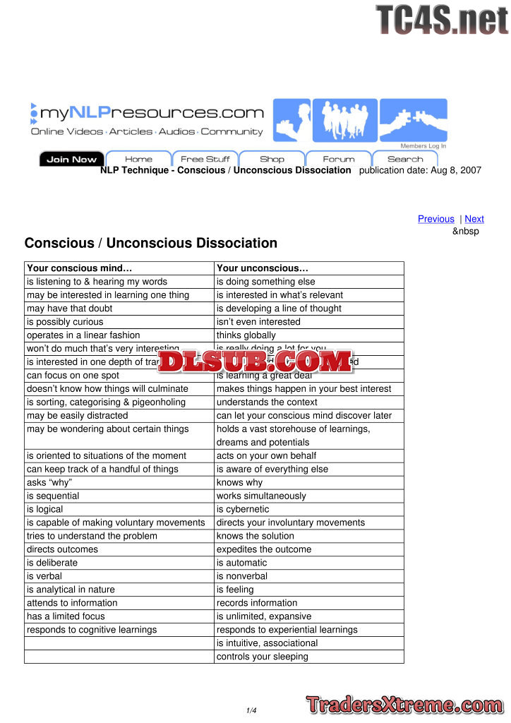 Nlp Technique Conscious Unconscious Dissociation - JPG Image File