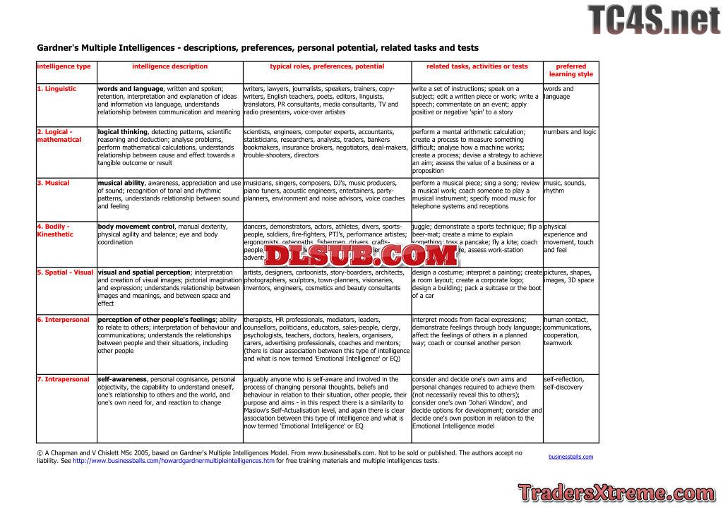 Multiple Intelligences Books Inventories Tests Surveys Quizzes Riddler